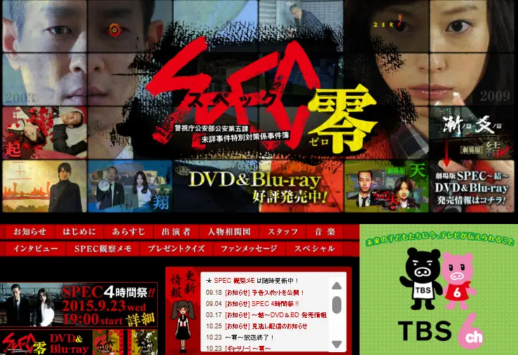 2010年10月8日から12月17日まで、TBS系金曜ドラマ枠で放送された「SPEC〜警視庁公安部公安第五課 未詳事件特別対策係事件簿〜」。